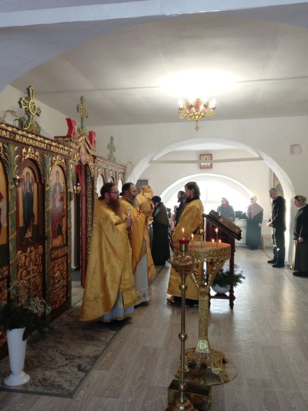 В этом году праздник Сретения Господня совпал с неделей о Страшном суде. В надвратном Никольском храме обители были отслужены всенощное бдение с литией и Божественная литургия. Богослужения совершил настоятель монастыря игумен Феодосий. Накануне, в мясопустную родительскую субботу, монастырское духовенство служило панихиды. Игумен Феодосий отслужил панихиду на монастырском подворье в Покровском храме села Казаково, а иеромонах Вениамин в Никольском храме монастыря.