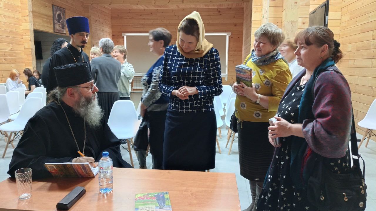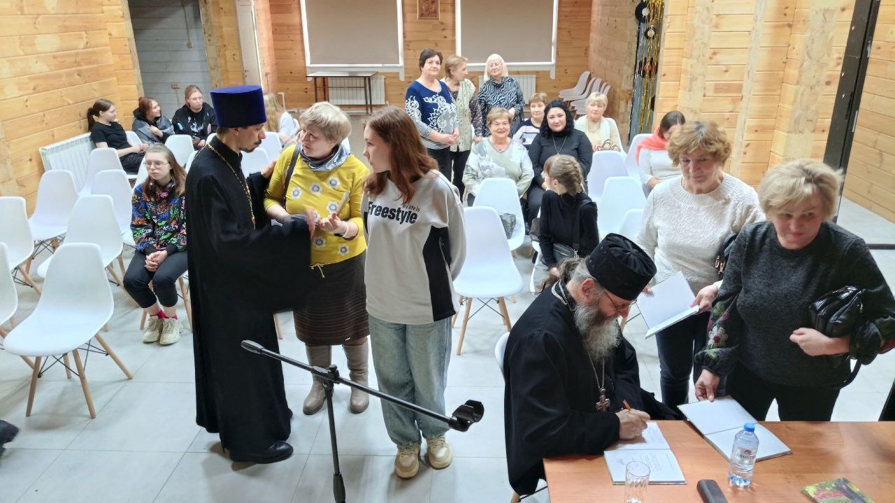 В минувшую субботу верующие Плесецкой епархии отметили День православной книги. В рамках этого события в епархиальном духовном центре состоялась встреча жителей поселка Плесецкий с настоятелем Александро-Ошевенского монастыря игуменом Феодосием (Курицыным). Во вступительном слове батюшка напомнил собравшимся о важности духовного просвещения и о богатстве нашей веры, которая веками влияла на историю, культуру и идентичность русского человека. Далее состоялось обсуждение книги «Тихая радость и тихая грусть», которую отец Феодосий написал в бытность настоятелем Покровского храма села Казаково. Отрадно было видеть на встрече молодых людей, учащихся Плесецкого торгового техникума. Ребята принимали живое участие в обсуждении, задавали много вопросов о православной вере, монастырской жизни, вызовах современности. По окончании мероприятия все желающие смогли получить книгу с автографом автора.