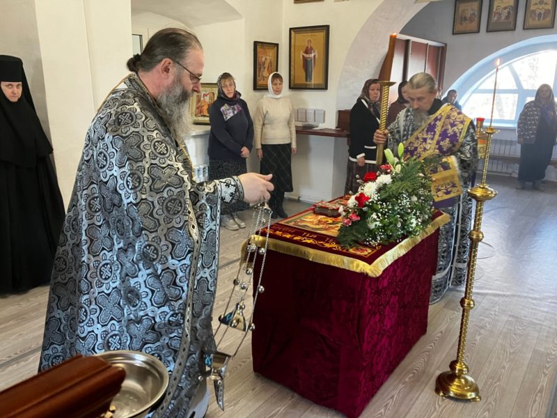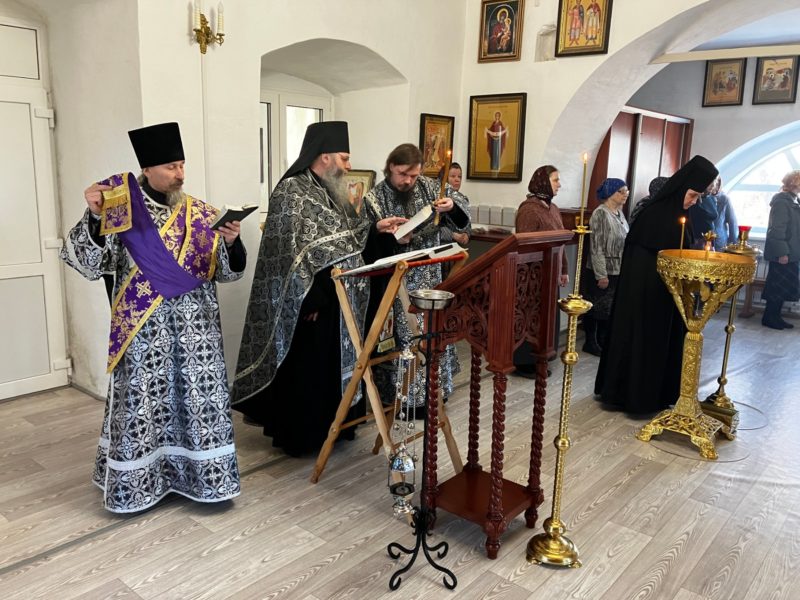 Богочеловек на кресте; один из распятых с Ним разбойников, обличая другого за богохульные слова, исповедует Иисуса Христа Господом, и Его невинность и Божество. Наконец, для славы Распятого следуют один за другим страшные знамения, возвещавшие о искупительных страданиях и смерти святых Святейшего и вразумлявшие распинателей (1 Кор. 2, 8). Во храме Иерусалимском завеса раздирается надвое, показывая, что со смертью крестной всемирной Жертвы настал конец древней скинии и открылся всем путь в самое святилище (Евр. 9, 8).