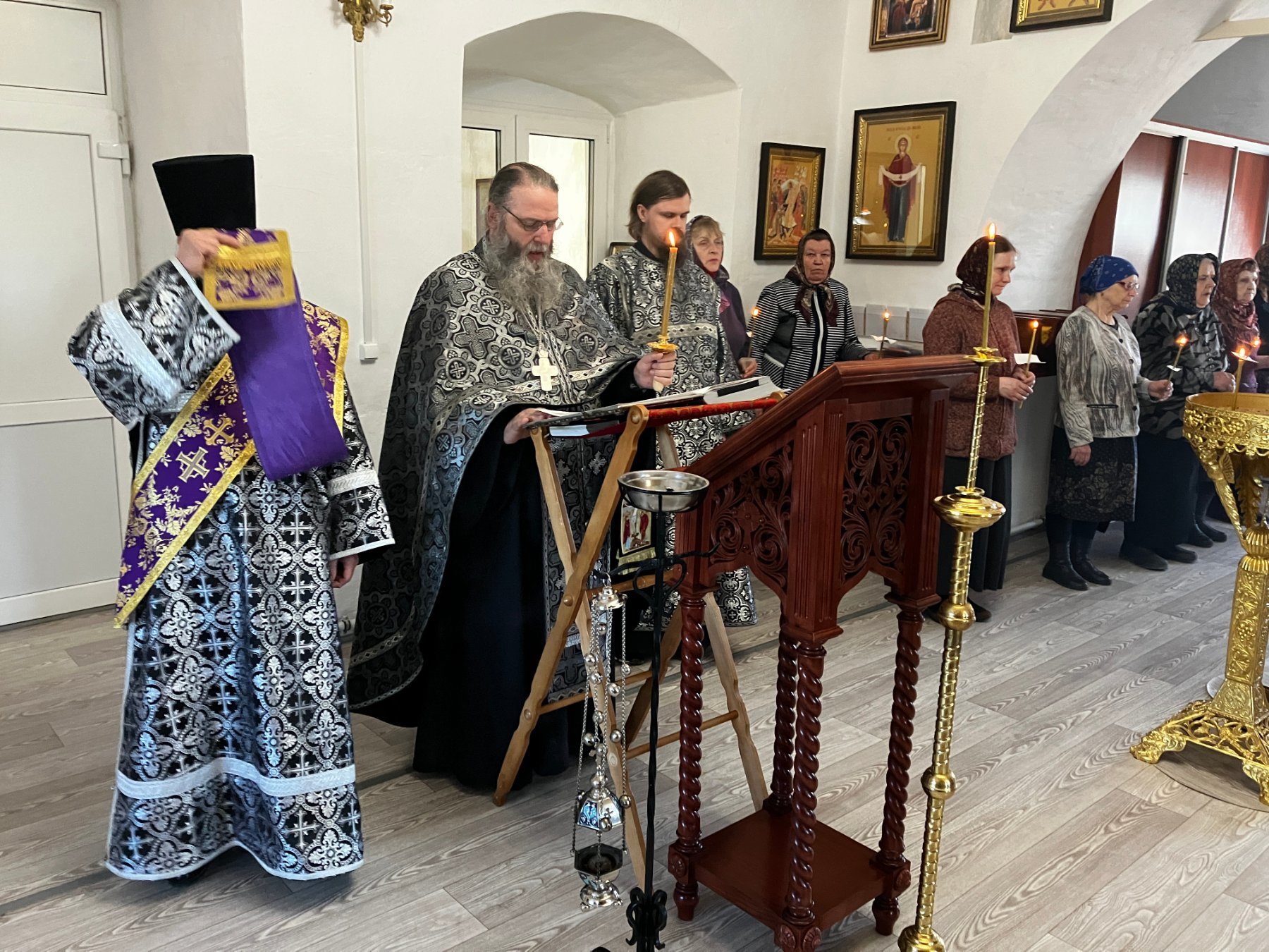 Каждое чтение Евангелия возвещают благовестом и при каждом чтении предстоящие зажигают светильники: это знаменательно указывает на торжество и славу, сопровождавшие Сына Божия и во время крайнего Его уничижения среди поругания и страданий и свидетельствующие о Его высочайшей святости и Божестве. Господь, идя на добровольные страдания и смерть, Сам предрек: ныне прославился Сын Человеческий, и Бог прославился в Нем. Если Бог прославился в Нем, то и Бог прославит Его в Себе, и вскоре прославит Его (Ин. 13, 31-32), то есть «вместе с крестом», говорит Иоанн Златоуст. Страдания Господа за грехи наши были, сколько тяжки, столько же и славны для Господа. Враги идут взять Его на страдания и смерть, – и падают пред Его Божественным всемогуществом и исцеляются от ран. Они злобствуют против Спасителя, но Его невинность и высочайшая святость торжествует над их ослепленною злобой. Те, которые или по страху, или корыстолюбию отреклись от Господа, грех свой против Него исповедуют или слезами раскаяния, или смертью отчаяния. Апостол Петр свое отречение от Христа омывает горькими слезами чистосердечного раскаяния. Иуда предатель, видя, что Господь осужден на смерть, предается отчаянию и возвращает 30 сребренников первосвященникам, говоря: согрешил, предав Кровь неповинную. Первосвященники, вместо утешения человеку, им послужившему, только увеличивают отчаяние его и являют свою слабость и нерешительность пред истиною, сказавши Иуде: «что нам до того? смотри сам». «Не слова ли это тех, сами свидетельствуют о своем злодействе и безумии, прикрывая себя безсмысленною личиною притворного неведения»? Отчаянный Иуда поверг сребренники в церкви и удавился. А сребренники, как цена крови, по совету первосвященников, не положили в казну церковную. «Понимаешь ли, – говорит святитель Иоанн Златоуст, – как они осуждаются своею совестью? Сами видят, что купили убийство, и поэтому не положили в корван».