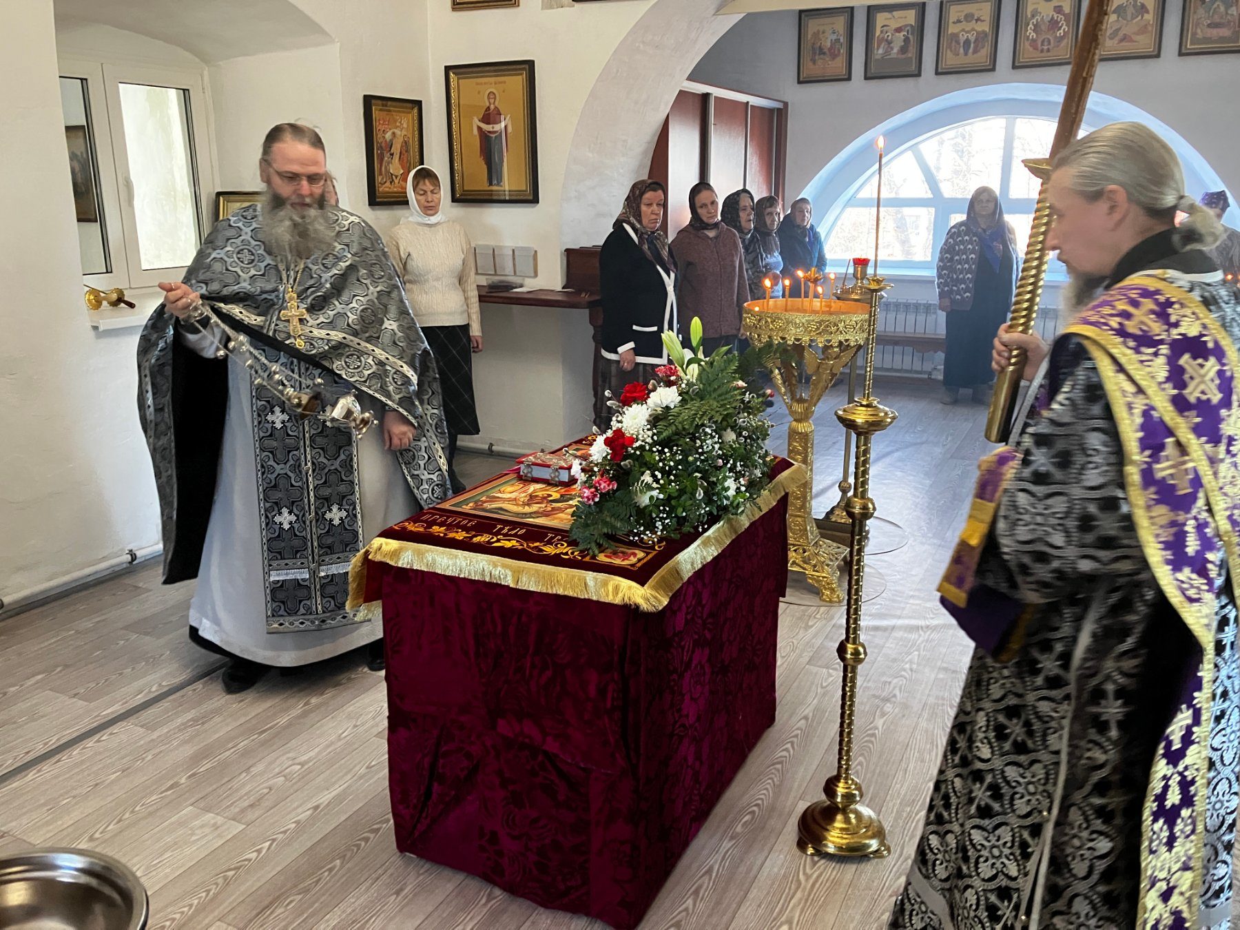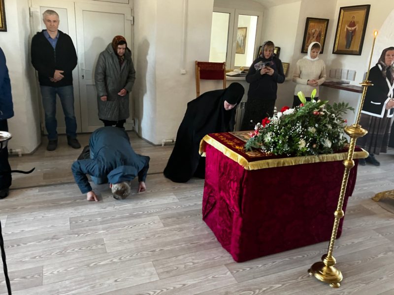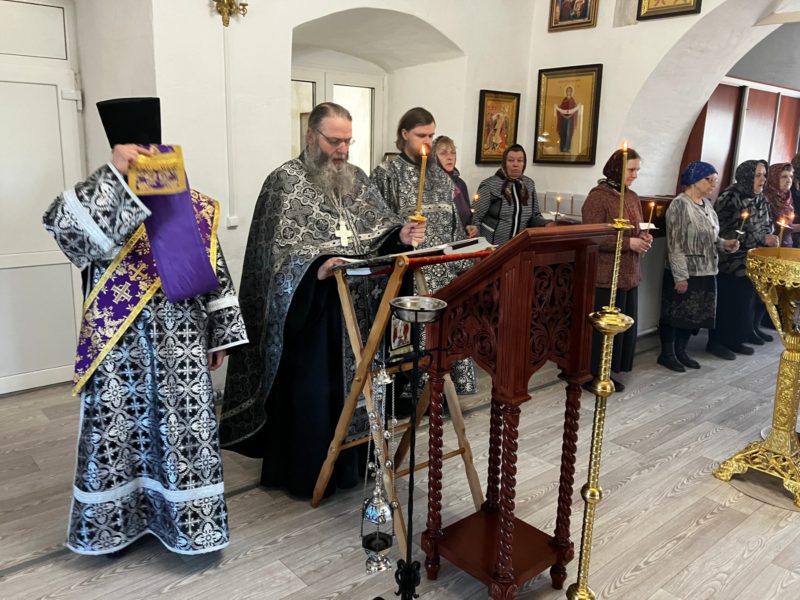 В Великую Пятницу Литургии не бывает, потому что в этот день Сам Господь принес Себя в жертву. Вечерня совершается в третьем часу дня, в час смерти Иисуса Христа на Кресте, в воспоминание снятия с креста тела Христова и погребения Его. На вечерне священнослужители поднимают Плащаницу (то есть изображение Христа, лежащего во гробе) с Престола, как бы с Голгофы, и выносят ее из алтаря на середину храма. Плащаница полагается на гробнице, особо приготовленный стол. Затем священнослужители и все молящиеся поклоняются перед Плащаницей и лобызают язвы изображенного на ней Господа – прободение ребра, руки и ноги Его. Плащаница находится на середине храма в продолжение трех (неполных) дней, напоминая этим трехдневное нахождение Иисуса Христа во гробе.